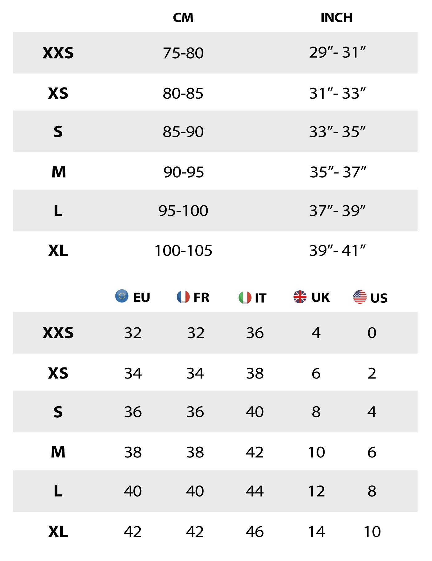 This size guide applies to all women's bottoms: jeans, pants, shorts, joggers, leggings and skirts.
